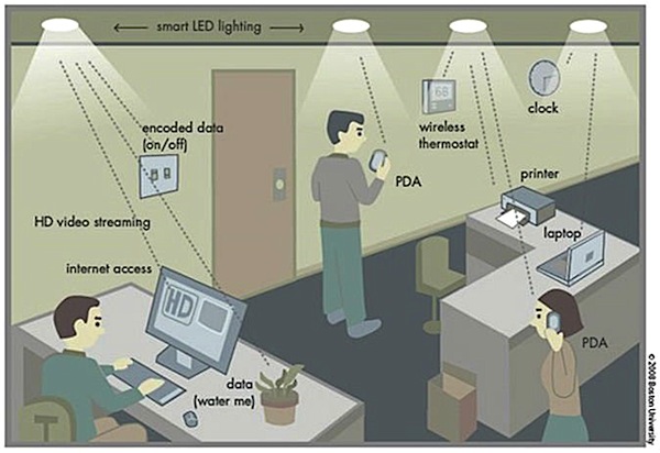 The change to Li-Fi, when it comes, will be driven mainly by the electrical and lighting sectors through LED lighting. Li-Fi will turn every LED lamp into wireless access points (APs), which effectively allows any user to move between sources without losing the connection. The LED lamps act as the medium to deliver networked, mobile, high-speed communication in a similar manner to Wi-Fi (but much faster). All this then becomes another enabler and part of the IoT.